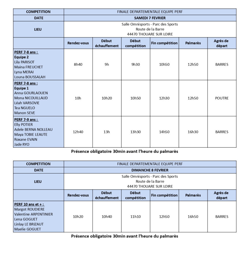 Convocations GAF COMPÉTITION DÉPARTEMENTALE INDIV PERF ORGANIGRAMME – FINALE DEPARTEMENTALE INDIVTélécharger COMPÉTITION DÉPARTEMENTALE ÉQUIPE FED A COMPÉTITION DÉPARTEMENTALE ÉQUIPE PERF ORGANIGRAMME – FINALE DEPARTEMENTALE EQUIPE PERFTélécharger