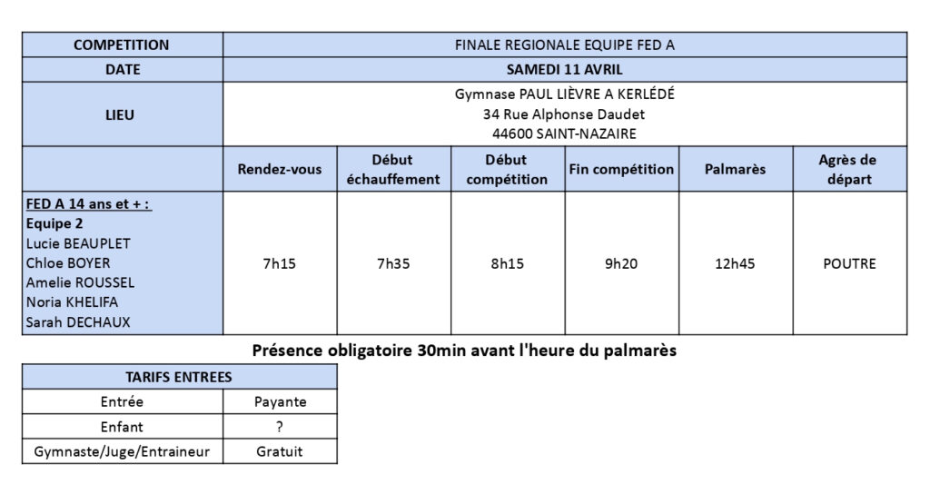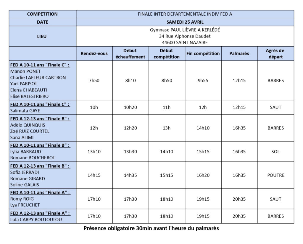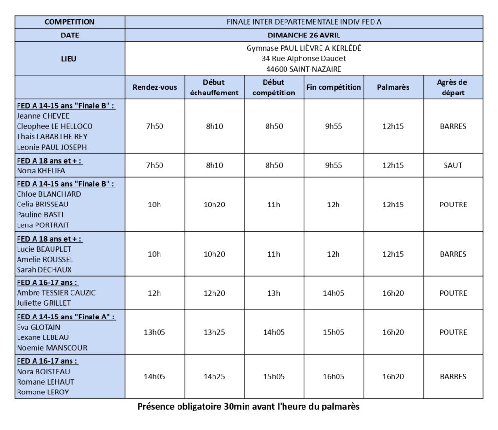 Convocations GAF FINALE REGIONALE PAR EQUIPES FEDERAL A FINALE_REGIONALE_EQUIPES_FED_A_STNAZAIRETélécharger FINALE INTER DEPARTEMENTALE INDIVIDUELLE FEDERAL A FINALE_ID_INDIV_FEDERAL ATélécharger