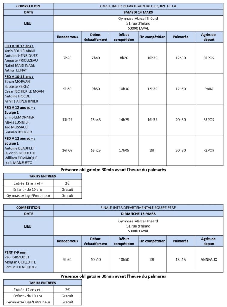 COMPÉTITION INTER DÉPARTEMENTALE EQUIPE FED A ET PERF